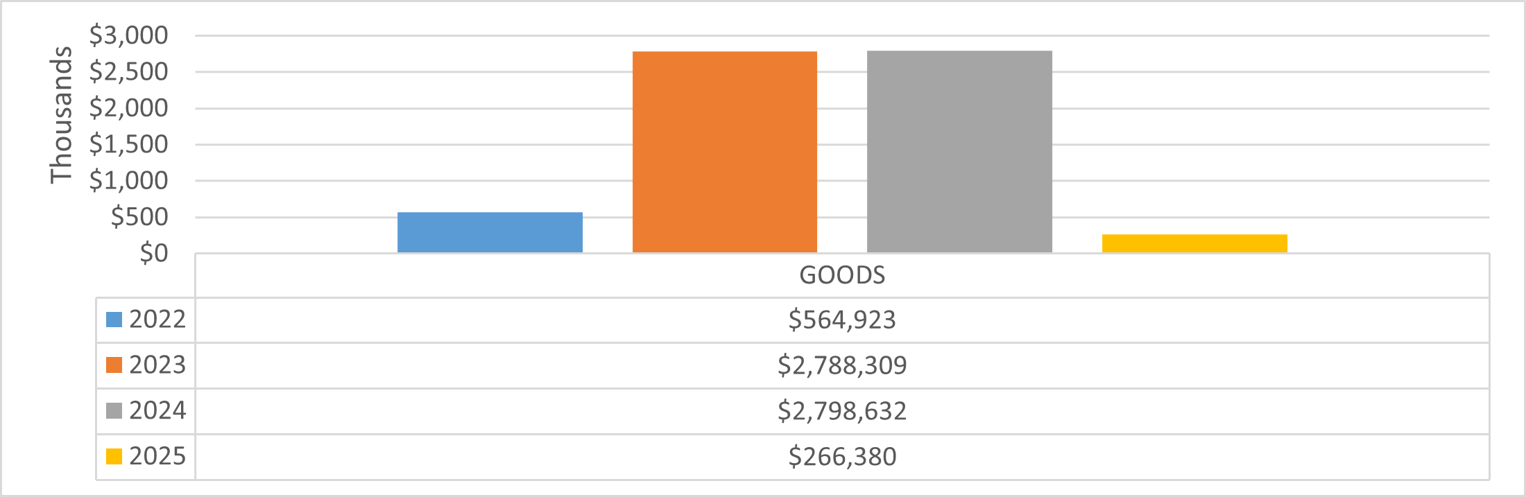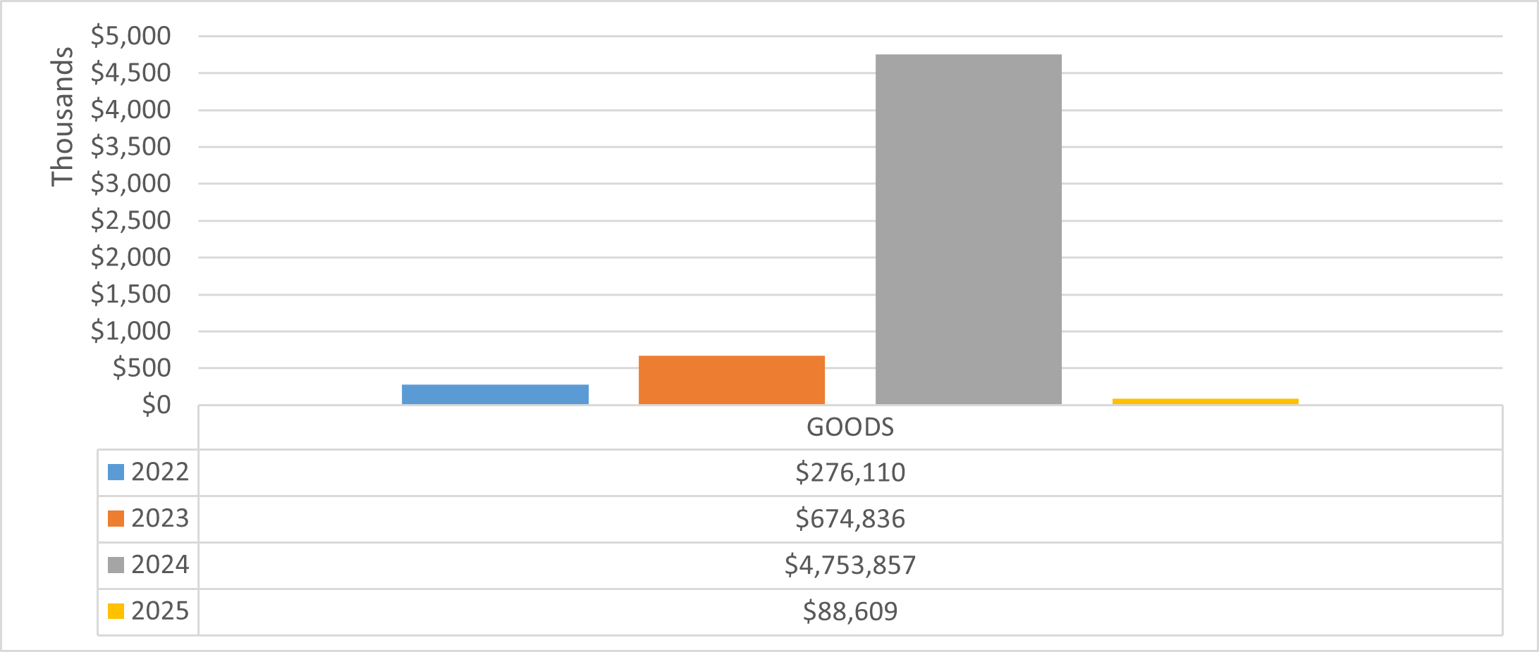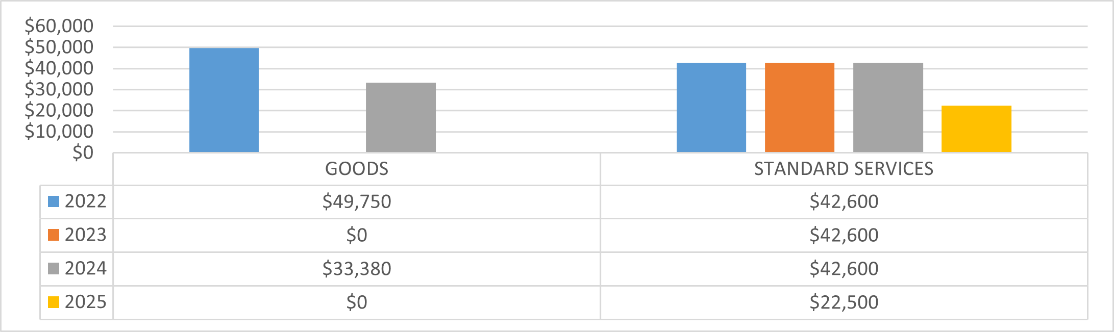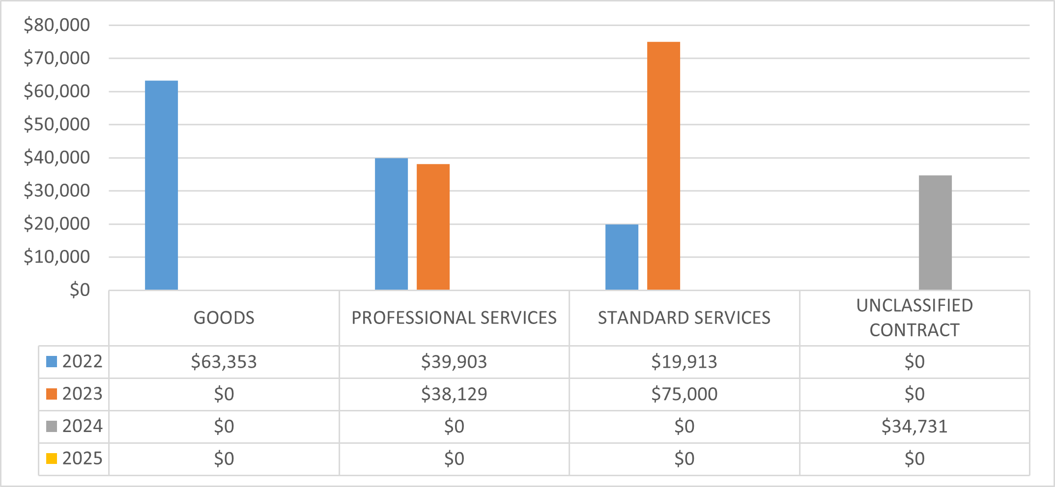 Our analysis also found that the average contract value was $750k more in FY25 than it was in FY24[9]. Chart 2 shows the average value of a contract in FY22, FY23, FY24, and FY25.