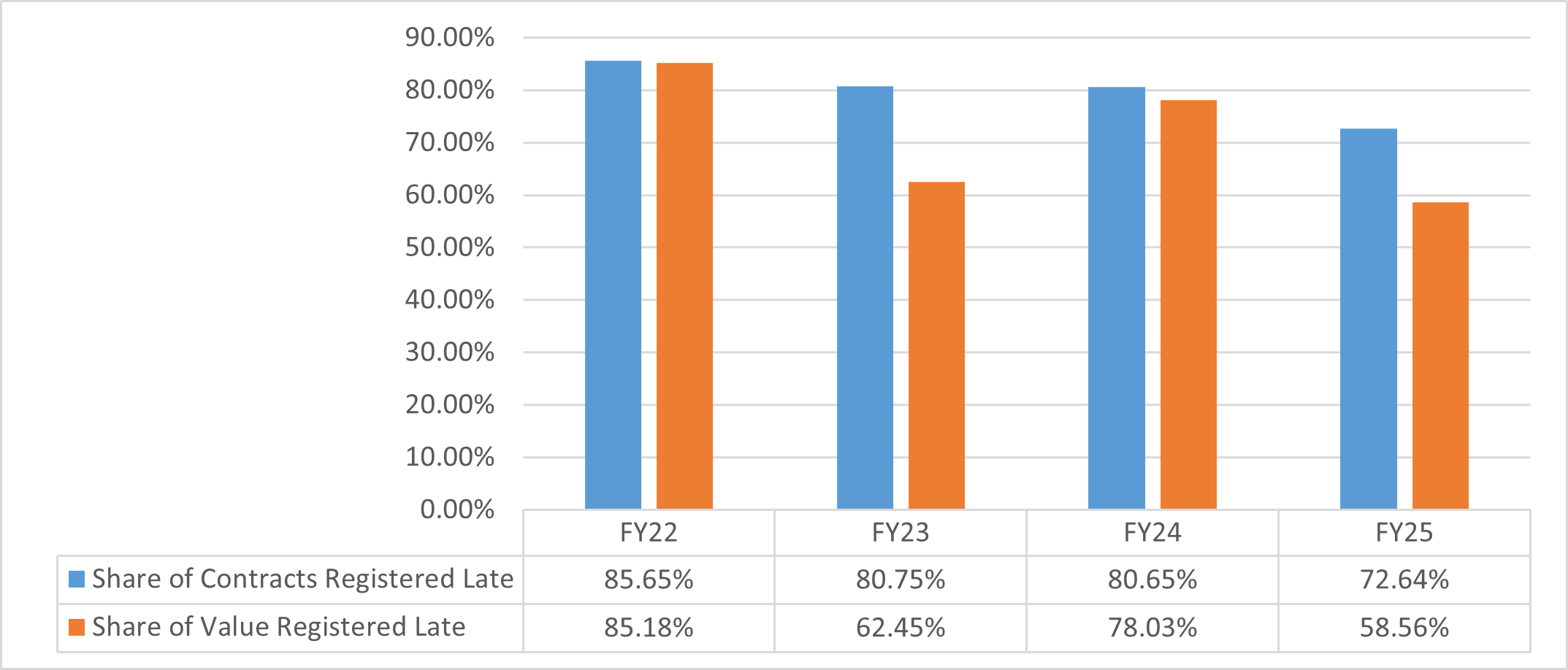 - Retroactive registration data (i.e. contracts registered after their start dates)