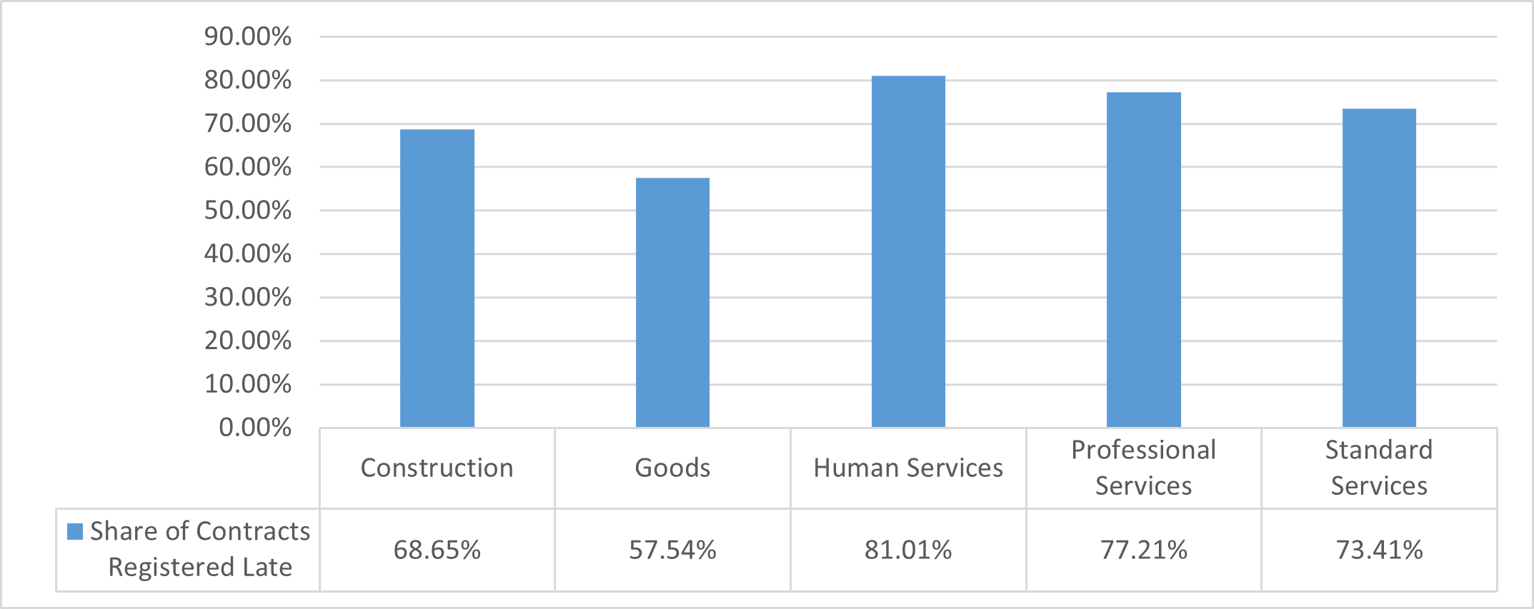 The Comptroller’s registration authority is separate and distinct from decisions relating to the necessity of new procurements or revenue opportunities, which vendors are selected for City contracts, how contracted goods or services will be provided, and (besides checking for cases of corruption or debarment) whether specific vendors are fit to contract with the City.[6] Each of these processes may be managed by different partners across the City, and can take a considerable amount of time to advance. Accordingly, the Comptroller remains committed to working with the Mayor’s Administration to streamline outdated and lengthy processes in City contracting so that: