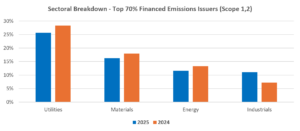 The Utilities and Materials sectors are the highest emitting sectors among the top 70% of Scope 1 and 2 financed emissions, representing 26% and 16% financed emissions of the group, respectively. This information continues to be critical to our engagement activities.