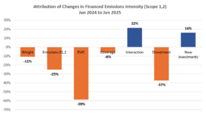 Between June 2024 and June 2025, the decrease in active public equity financed emissions was the primary driver of the overall portfolio’s financed emissions reduction.