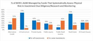 To further the BERS’s overall goal of reducing their carbon footprint, the Bureau of Asset Management also engaged with over 100 publicly traded portfolio companies in the BERS’s portfolio to encourage swift action that will position their company to meet our current moment and take advantage of growing opportunities in the clean energy sector. Two of the largest banks in the world disclosed their energy supply ratios and methodologies after reaching settlement with BERS. The majority of our public market managers have plans that are aligned with BERS’ net zero expectations. BERS also expanded its investments in clean energy and climate solutions.