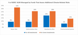 A substantial majority, or 65%, of the BERS’s public markets managers adopted net zero goals and/or quantified engagement or portfolio targets that apply to the BERS’s investments. A substantial majority, or 65%, of BERS’s public markets managers created new policies or practices or enhanced existing policies or practices to support decarbonization of their portfolio companies and assets as a result of the BERS’s net zero expectations. |