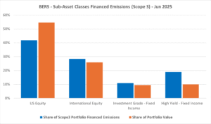 Between June 2024 and June 2025, the Scope 3 finance emission of public equity financed emissions decreased for the BERS portfolio, while overall fixed income’s financed emissions increased.