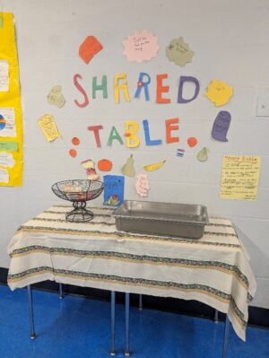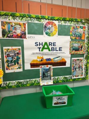 At the beginning of each school year, OFNS provides guidance for the Share Table Program in the Principal’s Guide. Kitchen managers are asked to review it with school leadership annually; this is because supervising cafeterias is the school administrators’ responsibility. OFNS created signage to clearly mark share tables to ensure students know how to use them. School staff monitor tables throughout the meal service to ensure food safety guidelines. According to information received from NYCPS for FY2025, food share tables were set up in 1,396 of the 1,675 (83%) buildings in which school food was served.