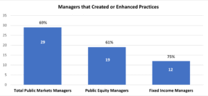 [12] These expectations apply only to public markets managers that manage public equity or corporate bonds for the System including actively and passively managed public equity, investment grade credit and high yield fixed income. They do not currently apply to managers that manage Treasuries or Mortgages.