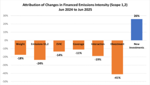 Between June 2024 and June 2025, the decrease in active public equity financed emissions was the primary driver of the overall portfolio’s financed emissions reduction.