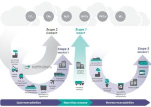 Illustration of Scopes 1, 2 and 3 emissions