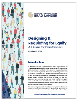 Designing & Regulating for Equity: A Guide for Practitioners comes at a poignant time when our Civil Rights are under attack. As a result, the Office of the NYC Comptroller convened fellow practitioners from across sectors in New York to generate collaboration and collective action.